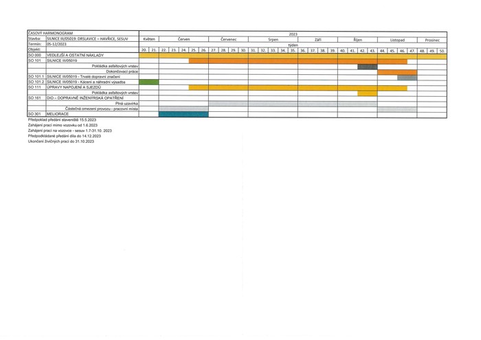 Za částečné i čtyřměsíční úplné uzavírky bude probíhat na silnici mezi obcemi Drslavice a Uherský Brod-Havřice stavební úprava půlkilometrového úseku, jehož stav narušuje geologicky nestabilní podloží. Práce v hodnotě 38 milionů korun začnou v polovině května a potrvají do konce listopadu. Investorem stavby je Ředitelství silnic Zlínského kraje. Částečná uzavírka bude od 1.6. do 30.6.2023, úplná uzavírka potom od 1.7. do 31.11.2023. Objízdná trasa bude vedena po silnicích III/05019, III/4958, I/50 a III/05019, konkrétně přes město Uherský Brod a obce Hradčovice a Drslavice.