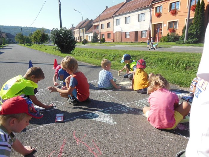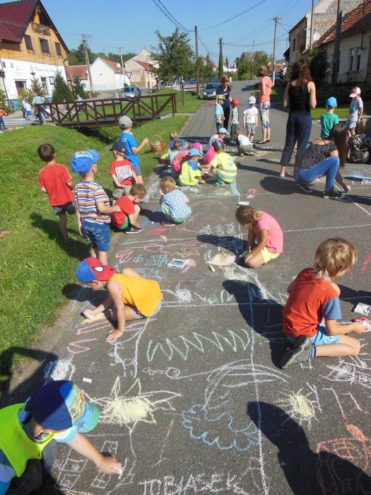 Úvod > O obci > Fotogalerie > Malování na chodník ZŠ a MŠ