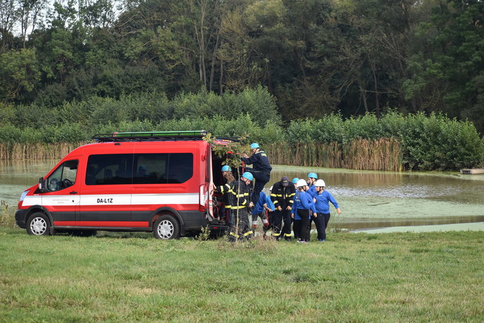 Úvod > O obci > Fotogalerie > mladí hasiči Hradčovice-dálkové vedení vody v Drslavicích