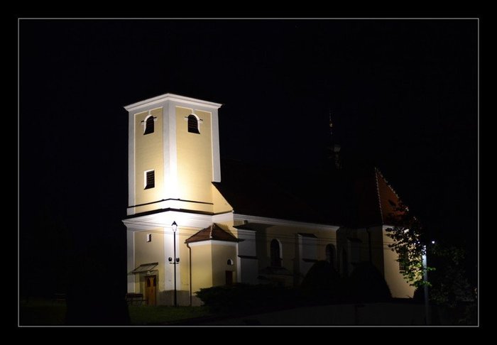 Úvod > O obci > Fotogalerie > Nové osvětlení kostela a nové LED osvětlení před obecním úřadem