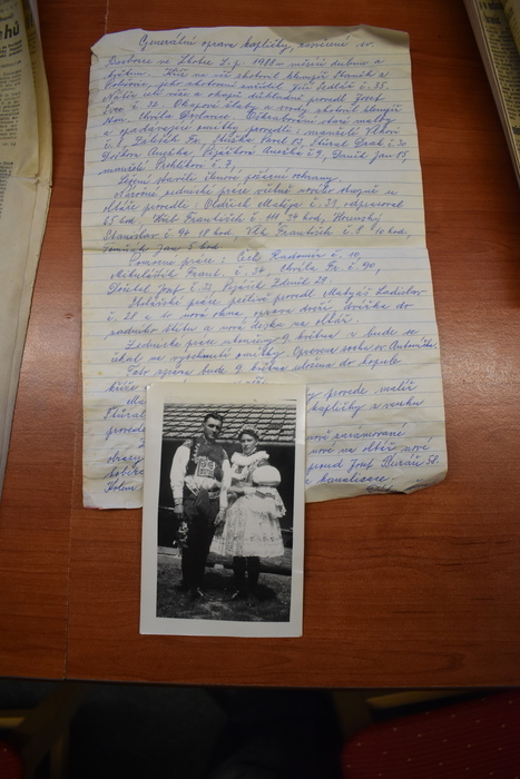 Úvod > O obci > Fotogalerie > Památný nález ve věžičce kaple sv. Barbory na Lhotce z roku 1988