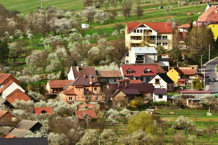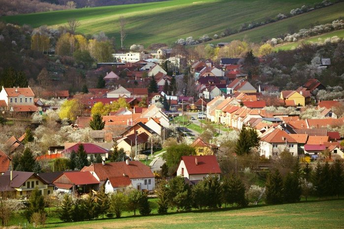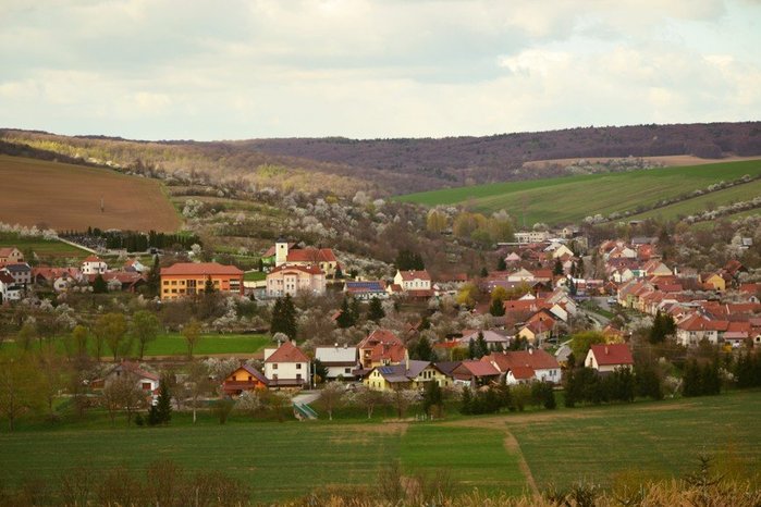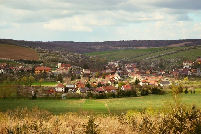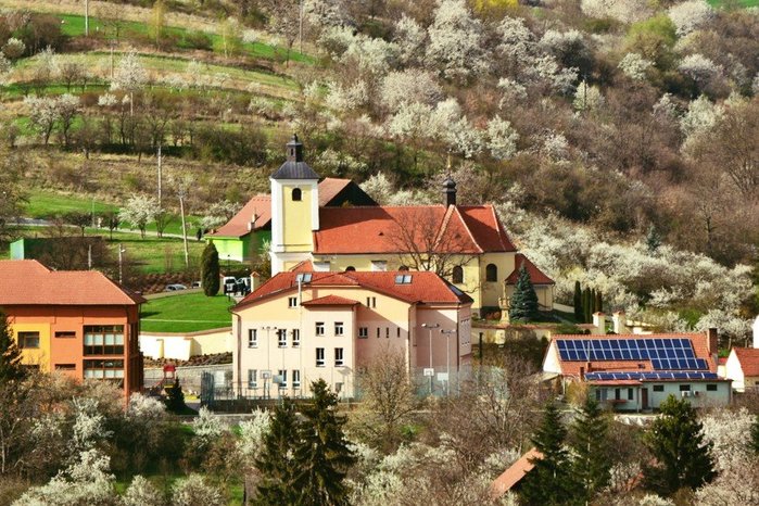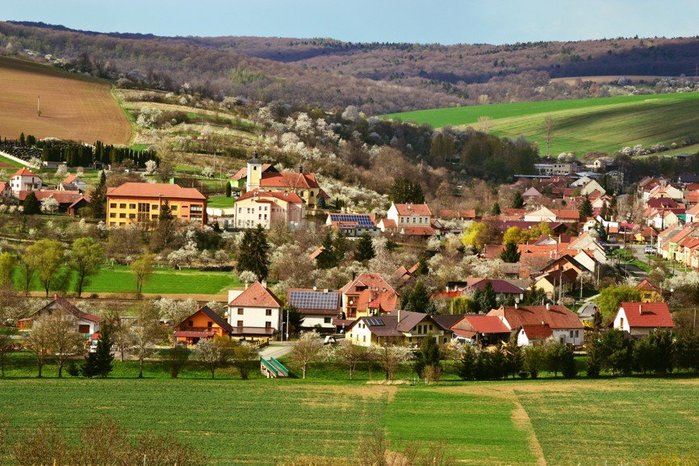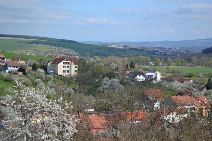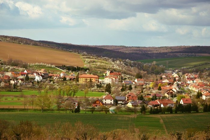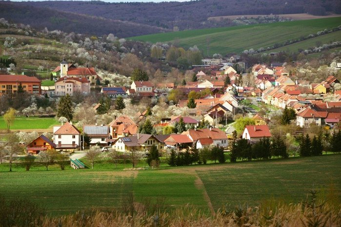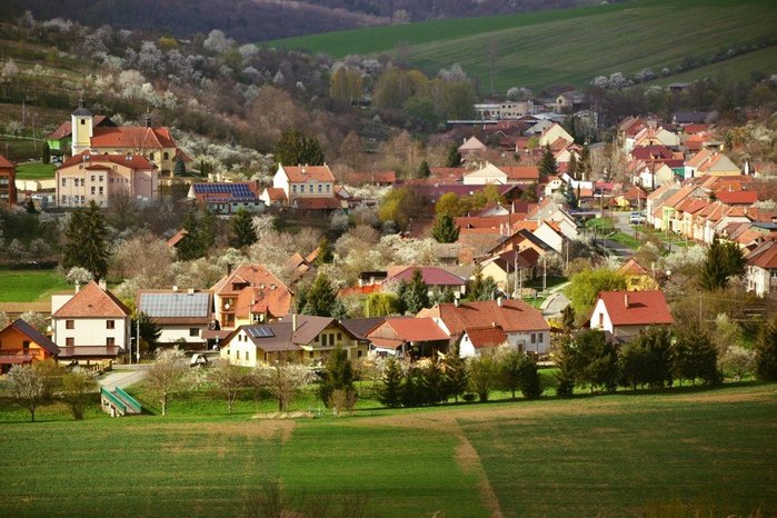 Úvod > O obci > Fotogalerie > Pohled na kvetoucí obec Hradčovice