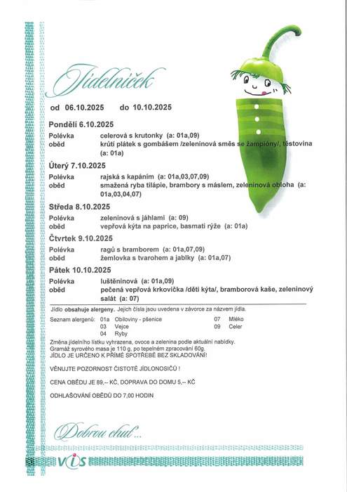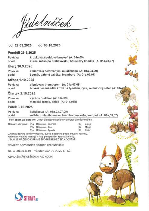 Jídelníček 29.09. - 10.10.2025